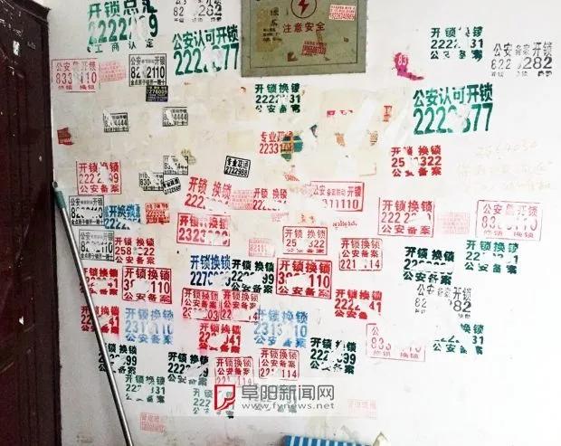 “专业开锁,公安备案”,像这样的开锁小广告在市区很多小区楼道内随处可见。